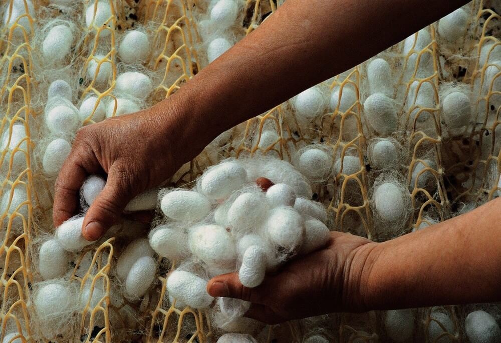 सिल्कबेरी फार्म्स प्रीमियम रेशीम उत्पादनासाठी अत्याधुनिक टिकाऊपणाच्या पद्धतींसह प्राचीन रेशीम शेती परंपरा एकत्र करते. आमचे रेशीम किडे काळजीपूर्वक संगोपन केलेल्या तुतीच्या पानांवर वाढतात, इष्टतम आरोग्य आणि रेशीम गुणवत्ता सुनिश्चित करतात. नैतिक शेती आणि पर्यावरणीय कारभाराप्रती दृढ वचनबद्धतेसह, आमच्या रेशमाचा प्रत्येक पट्टा अतुलनीय कारागिरी आणि पर्यावरण चेतना प्रतिबिंबित करतो. सिल्क बेरी फार्मसह शाश्वत लक्झरीचे सार अनुभवा – जिथे परंपरा आणि नावीन्य एकत्र विणले जाते.